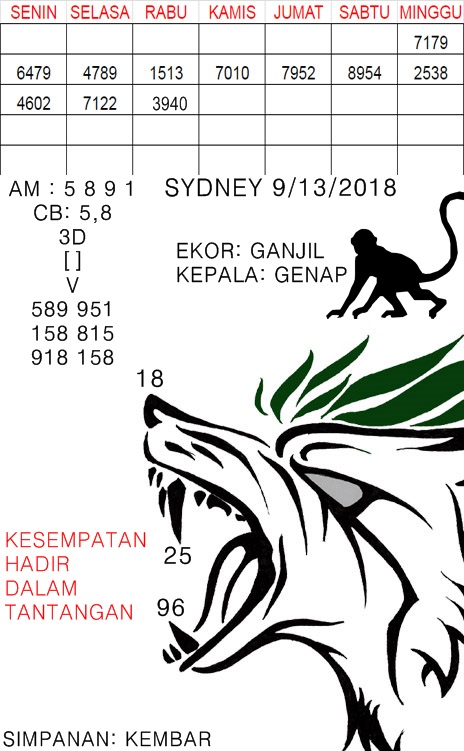 SYAIR SYDNEY 13 SEPTEMBER 2018 Prediksi Medantoto