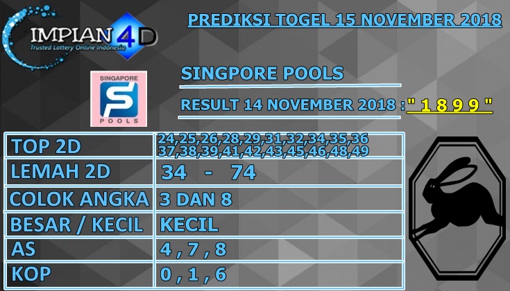 PREDIKSI TOGEL SINGAPORE POOLS KAMIS 15 NOVEMBER 2018 IMPIAN 4D